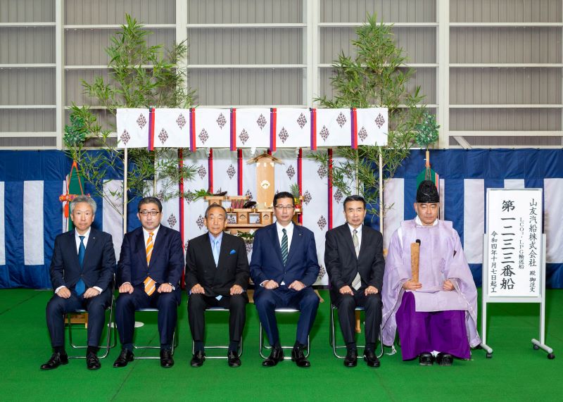 At the groundbreaking ceremony, Mitsubishi Shipbuilding prayed for safety during the construction period and completion without accidents with the attendance of Sanyu Kisen Kaisha, which was contracted to provide the demonstration vessel for the project.