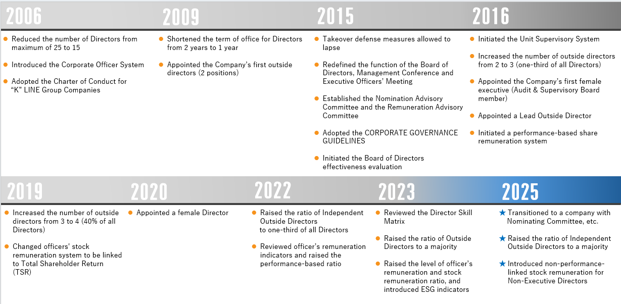 “K” LINE transitioned from a "Company with an Audit & Supervisory Board" to a "Company with a Nominating Committee, etc." on March 28, 2025.
