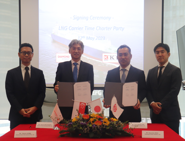 川崎汽船株式会社(以下、「当社」)は、このたび三菱商事株式会社の100%子会社であるDiamond Gas International Pte. Ltd.社(以下、「DGI」)と、新造174,000m3(メンブレン)型LNG船1隻を対象として、15年+合計10年(延長オプション)の長期定期傭船契約を5月12日に締結しました。また、同時にサムスン重工業(Samsung Heavy Industries Co., Ltd.)と当該新造船の造船契約を締結しました。
